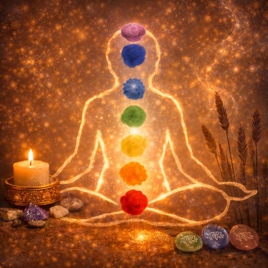 Durante la sesión se trabaja sobre el campo energético y los principales chakras, ayudando a liberar bloqueos que pueden afectar nuestro bienestar físico, emocional o espiritual. Este proceso permite que la energía vuelva a fluir de manera más equilibrada, favoreciendo la calma, la claridad y la conexión interior.
